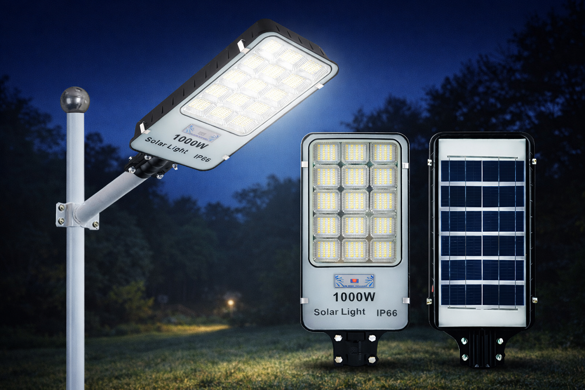 1000W LED napelemes utcai lámpa – Erős kültéri világítás hálózat nélkül